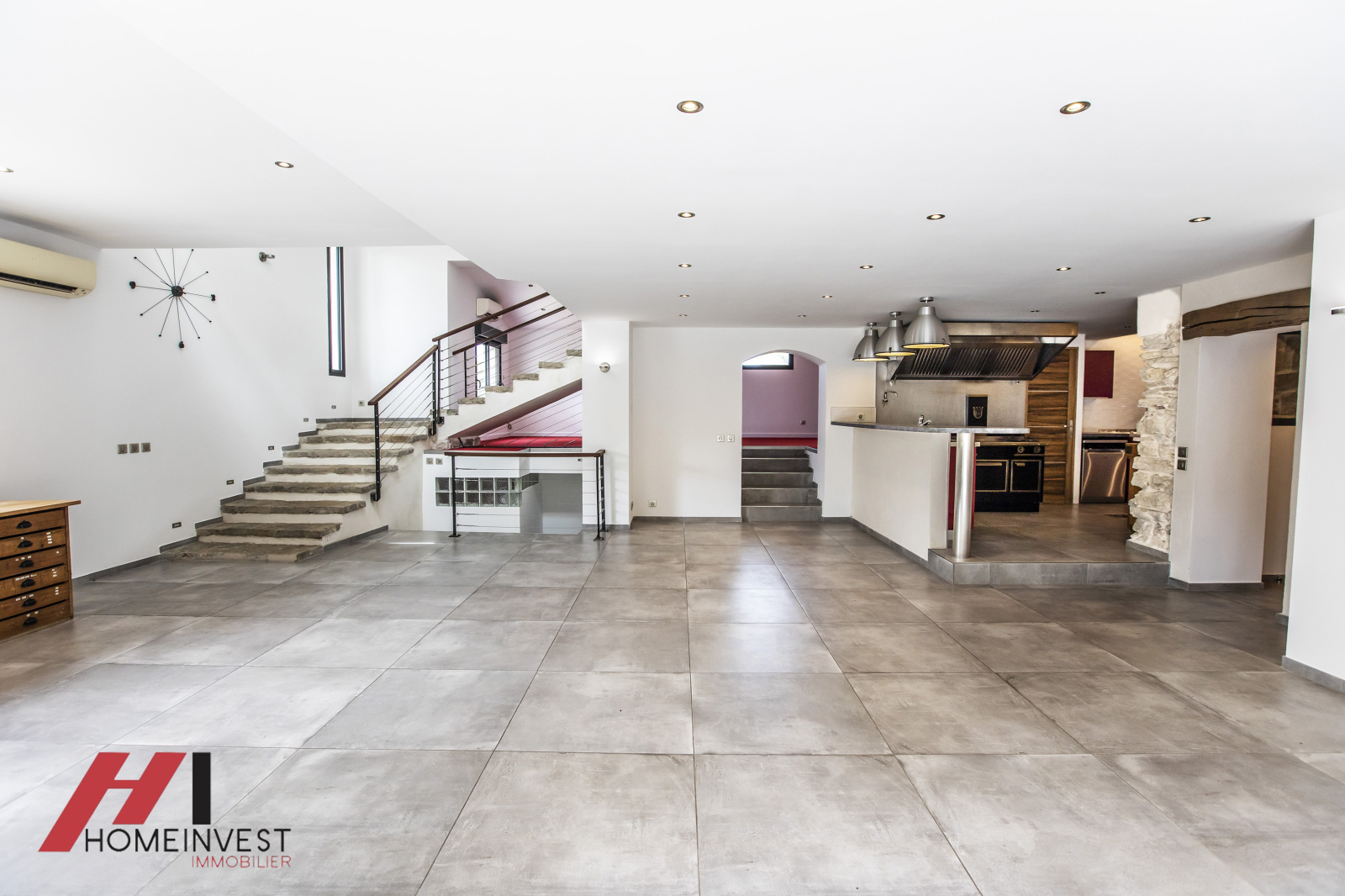 Une maison composée d'un très grand espace de vie donnant sur une vraie cuisine professionnelle digne de TOP CHEF!!