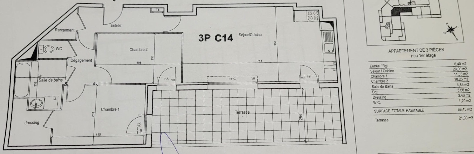 3 pièces - 65 m²